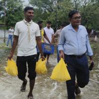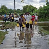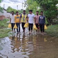 Due to continuous rainfall, the DDU Nagar Colony was flooded and residents were unable to go outside for daily needs. To support the affected families, a food donation programme was organized with the help of railway officers. Essential food items were distributed to ensure immediate relief to the people in need..