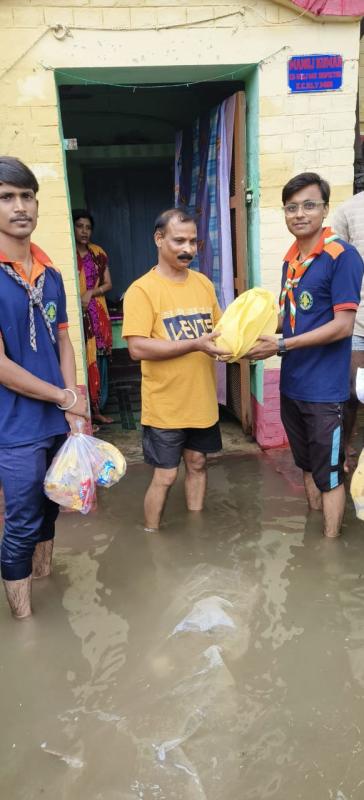 On 4 October, a door-to-door food donation programme was conducted at DDU Nagar Colony with the support of the East Central Railway Bharat Scouts and Guides District Association and railway officers. The activity was carried out with the participation of Rovers and Unit Leaders, ensuring timely distribution of food to affected families.