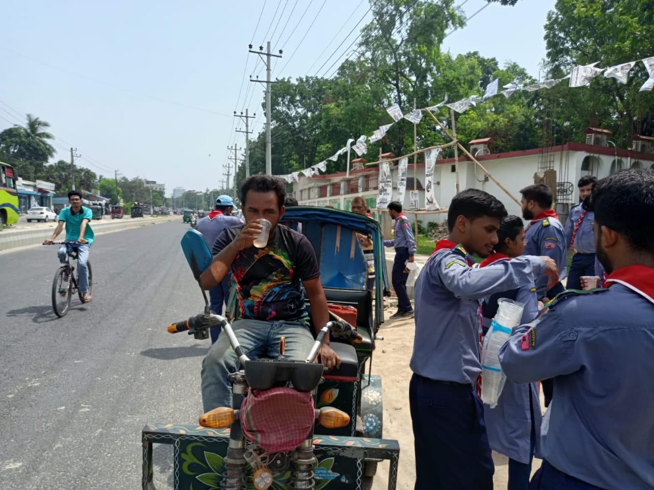 During the ongoing summer, the heat of the sun during daylight hours is very high. So the use of water has now become essential. But traveling from one place to another, drinking water is scarce with us and buying a bottle of water is not everyone's cup of tea. So to provide clean drinking water to all, Rajshahi Polytechnic Institute Rover Scout Group organized free water distribution drive on Rajshahi-Naogaon highway road.