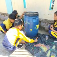 The implementation method used is theoretical, applicable and fun, adapted to the character and abilities of the students. First, we do some exercise to maintain fitness. Then, the children were given scouting education accompanied by games and songs. After that, we taught them to make painting pots from inorganic waste and eco-enzymes. Murals were also depicted on trash cans along with waste sorting labels. Next, planting of plant seeds was carried out on the school grounds.