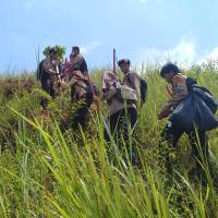 Di setiap kelompok memegang pelastik untuk mengumpulkan sampah hasil memungut di sepanjang jalan