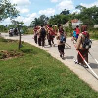 Mulai dari koramil ( komando rayon militer) parungpanjang kami berjalan menuju bukit pengki di desa dago kami berjalan/Hiking