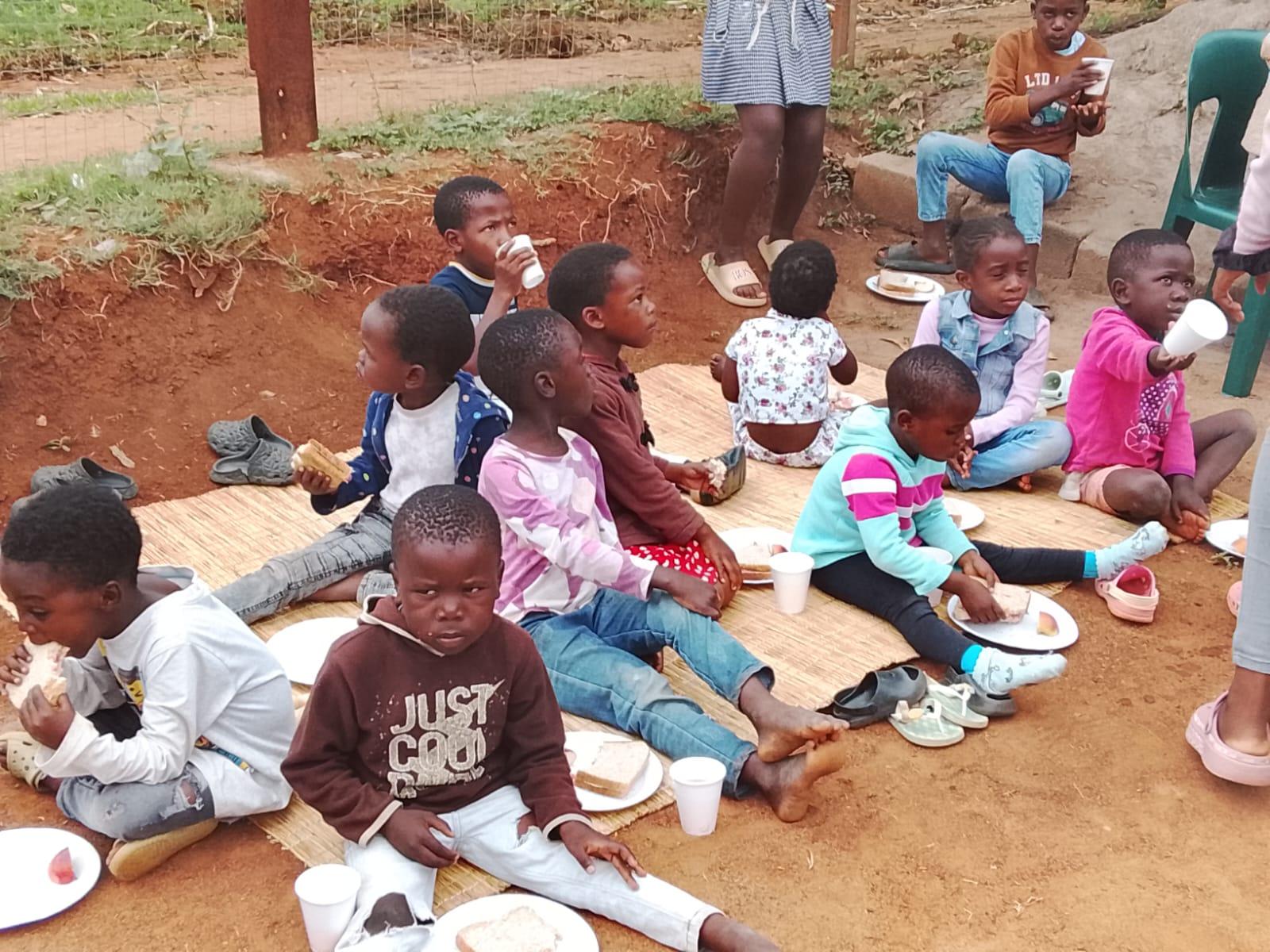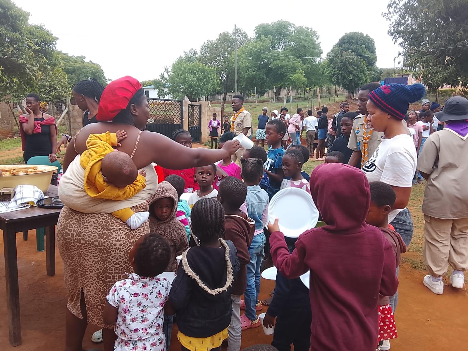 We first arrived at 12pm for setting up. Then we prepared 42 food parcels. While others were preparing for breakfast. Then when they came we first gave the parcels. Then breakfast And the day began the games(sports). Some netball then some soccer the day was fun.