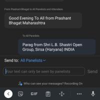 Hey Everyone, Myself PARAG from HARYANA {SHRI L.B. SHASTRI OPEN GROUP, SIRSA (HARYANA) INDIA}.My participate ID for the 2nd day of the webinar via ZOOM is 29583449.