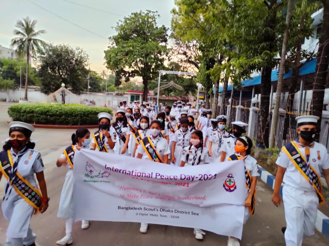 We organised a rally.we start our rally from Bangladesh navy College .After finishing the rally we go to the seminar room. Were our teachers told us about the importance of peace and how they use to calibrate Peace day.in the evening we finished our seminar.