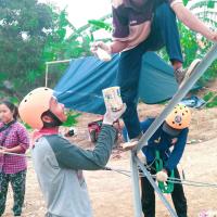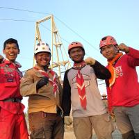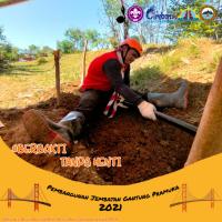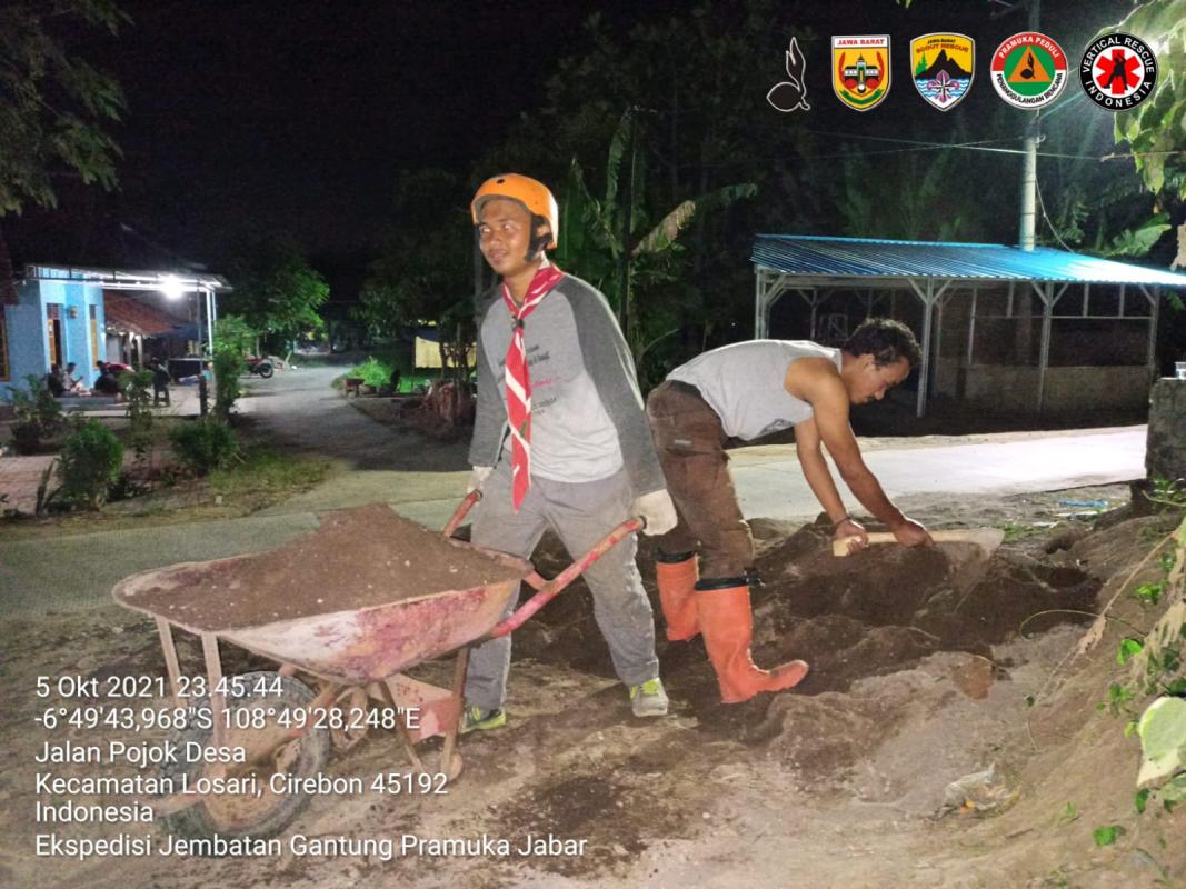Kita berkolaborasi antara Kwarda Jawa Barat, Vertical Rescue Indonesia, Kwarcab Cirebon, Petaka Grage dan Masyarakat Desa Kalirahayu dan Desa Limbangan bersama-sama membangun jembatan gantung pramuka