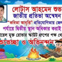 "কবিতা আবৃত্তি" প্রতিযোগিতায় জেলা পর্যায়ে দ্বিতীয় স্থান অধিকার করাই আমাকে দোয়েল মুক্ত স্কাউট গ্রুপ এর পক্ষ থেকে শুভেচ্ছা উপহার