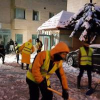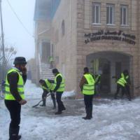 The scouts from the group formed an emergency team and opened the entrances of the hospitals( like Al-Mizan, Alia, Al-Ahli,) and Al Ihsan charitable Society, institutions, shops, and residential buildings through removing the snow that blocked most of the city roads.