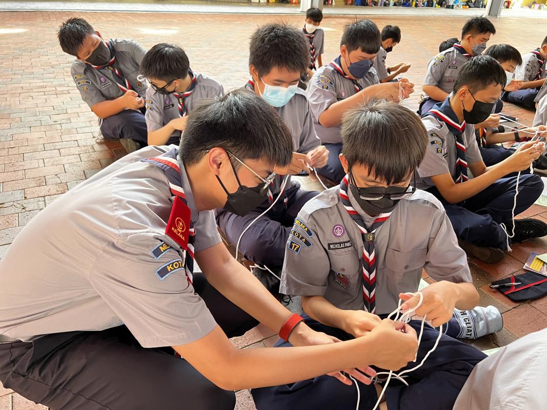 I was in charge for the scout logos part. I explained the elements and the meaning of different colours in world scouts logo and Malaysia scout logo to the cub scouts. What is more, I do take part in teaching the cub scouts about different types of knots. A total of 6 different types of knots were showed and the function of each knot were explained as well.
