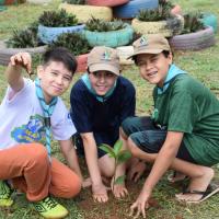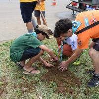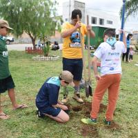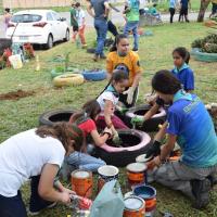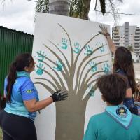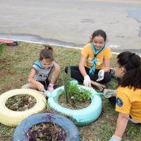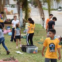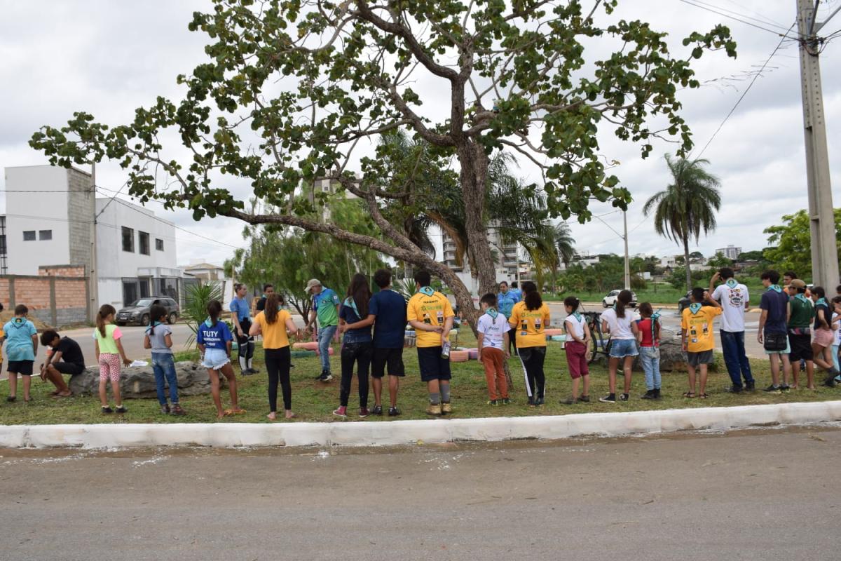 As tarefas foram organizadas por meio de equipes formadas por escoteiros e lobinhos, de acordo com as habilidades de cada um. Isso incluiu a coleta do lixo, pintura dos canteiros, colocação do cal no meio-fio, entre outras atividades de revitalização. Utilizamos materiais recicláveis como garrafas PET, e elementos naturais, como plantas, para decorar a praça.