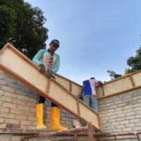 Setelah selesai tugas sebagai Ketua Pembinaan Projek, saya juga meneruskan kerja pembinaan dengan memasang kotak tiang dan mengisi konkrit (simen + pasir kasar + kuari halus) dan 4 besi batang besi y10 yang diikat dengan besi kolom dan dawai bagi memastikan tunjang tiang madrasah kuat dan tahan lama. Seterusnya, penggaulan konkrit (simen + pasir kasar) bagi pengikatan bata bagi membuat dinding madrasah. Saya juga membuat dan memasang kotak bing atas dan mengisi konkrit (simen + pasir kasar + kuari halus + 4 batang besi y10 diikat dengan besi kolom dan dawai) untuk memastikan kekuatan bing atas bagi menampung berat kerangka bumbung(besi).