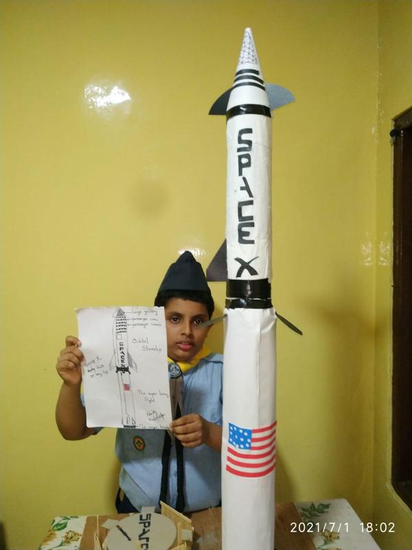 I am a space lover.I had a dream to build a SpaceX rocket.So then I had got a chance to make it.I only used wasted materials to build this 1.45 metres higher rocket.Before this,When I am watching a video on Youtube.They had shown the full structure of a rocket.Then I had got a perfect idea about making my rocket.