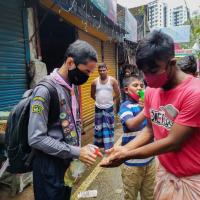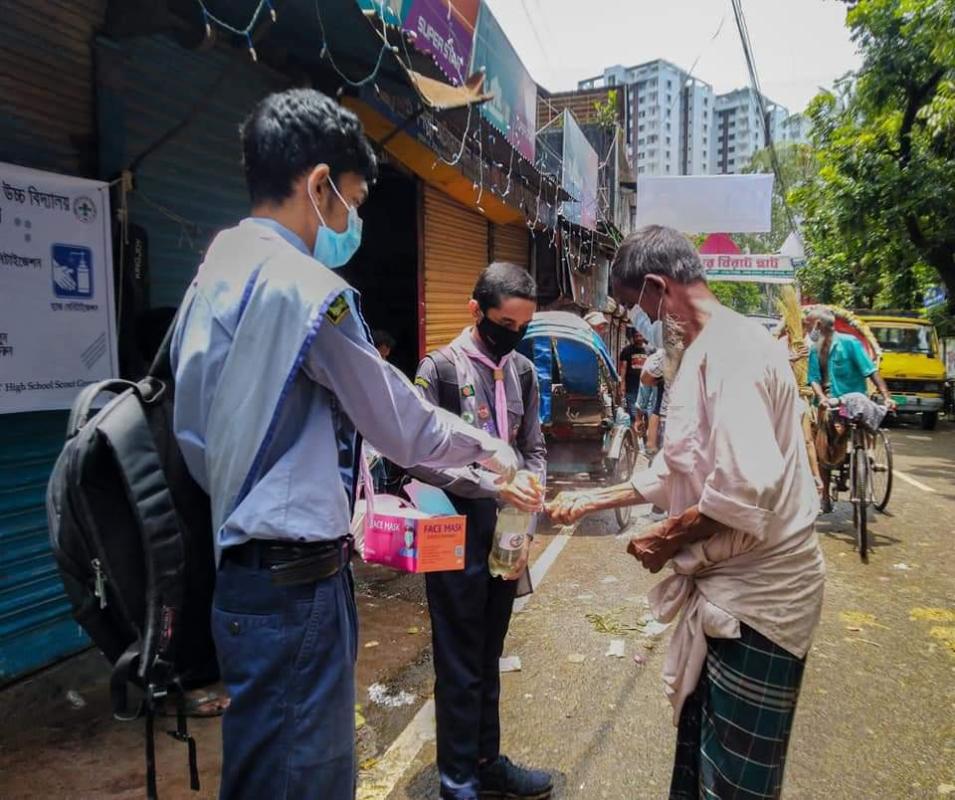 Firstly we the members of MOTIJHEEL GOVT BOYS HIGH SCHOOL SCOUTS GROUP decided where we should do this program . It was the time of Eid UL Adha so we decided to distribute mask on a haat . So we went there with masks and sanitizer and started distribute to locals specially who have no money to buy a musk . We targeted the poor so that they could be benefited.