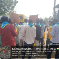 The project was carried out with the strong support of the Naduveerapattu Village President and active participation of local community members. A rally and awareness programme were conducted across the village. Students and volunteers interacted with residents, and a collective pledge was taken in front of the community to avoid single-use plastics and adopt manjappai in daily life.