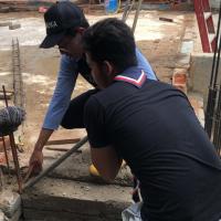 Seterusnya, saya membuat kotak tiang yang di ajar oleh tukang yang mahir iaitu Haji hasan iaitu tukang yang berpengelaman. Saya juga menggunakan pengukur air semasa mengikat bata supaya bata lebih stabil dan dinding tidak mudah runtuh.