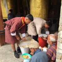 52 of us had volunteered at memorial Chorten for seven days. We were to control the crowds when there is special occasion and to serve meals and water for other days where there were recitation of God of medicine (Sangay Menlha)
