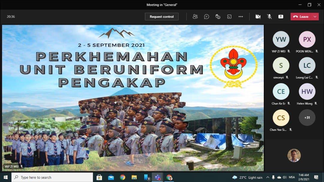 Perkhemahan ini melibatkan ahli-ahli pengakap yang terdiri daripada lima buah kelas iaitu Pendidikan Islam 1, Bahasa Melayu 2, Bahasa Inggeris 2, Pendidikan Jasmani 3 dan Matematik 1. Perkhemahan ini dilakukan secara atas talian menerusi microsoft office yang menyediakan pelbagai perisian yang menarik. Antaranya ialah microsoft office ini membolehkan kami bersemuka di hadapan komputer riba serta membolehkan pembahagian dalam kumpulan dilakukan secara rawak dengan mudah