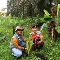 dengan menanam 3 macam pohon yang berdampak besar untuk kedepannya misal pohon berbatang keras dan akar tunjang untuk menjaga ekosistem untuk hewan hewan terbang untuk hidup serta bertujuan mereboisasi lingkungan tandus untuk melestarikan ekosistem tumbuhan pada lingkungan sekitar