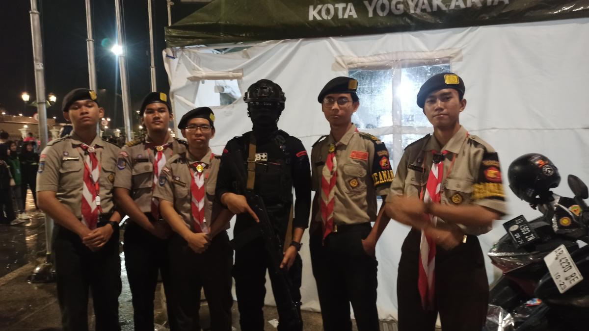 Menjaga pos PAM di titik 0 KM Kota Yogyakarta