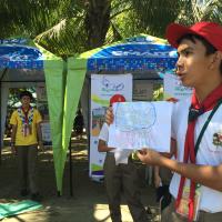 Together with several Government Organizations (i.e.DENR, BFAR, PNP etc) and NGOs (Greenpeace, UN), the Messenger of Peace module was also assigned under the Global Development Village program and implemented it for three consecutive days. The following sub activities were included in the MOP module: Video Presentation about Peace and Networking, Online Registration Drive for the Scout.org online platform, Drawing for Peace and Sing-A-Song (Alele).