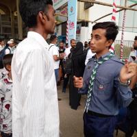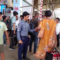 কমলাপুর রেলস্টেশন বাংলাদেশের সবথেকে জনবহুল স্টেশন। সাধারণ দিনে যাত্রী পরিবহন করে প্রায় ১ লক্ষ ১৫ হাজার যাত্রী। বিভিন্ন স্পেশাল দিনে তা প্রায় চার গুণ বৃদ্ধি পায়। রেলওয়ে কর্তৃপক্ষের দ্বারা বিশেষ দিনগুলো সামাল দেয়া সম্ভব হয় না। স্কাউটস যাত্রীদের কে সঠিক তথ্য প্রদান করে,ট্রেনের সঠিক স্থান চিহ্নিত করে দেয় এবং নারী,শিশু ও বৃদ্ধদের সহযোগিতা করে থাকে ও হুইলচেয়ার পরিবহন করে। কেউ আঘাতপ্রাপ্ত বা অসুস্থ হলে প্রাথমিক প্রতিবিধান প্রদান করে থাকে।