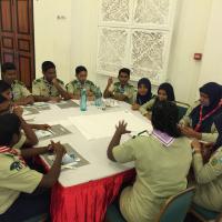 Scouts joined in #SaafuRaajje National Waste Management Symposium, School Forum. Chief Guest Minister of State for Education Hon. Dr. Abdullah Nazeer. Deputy Minister of Environment & Energy Hon. Ali Amir, representatives from UNDP and other officers from various agencies are present. This is an effort to management wastes and to keep young boys and girls aware of the risk perils attached in improper waste management.