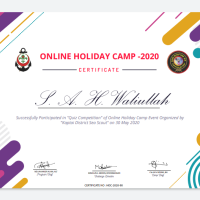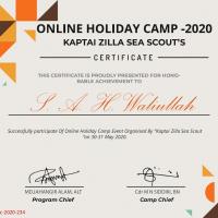 For the first time, Bangladesh Scouts, Kaptai District Naval organized "Online Scout Holiday Camp-2020" to spend some pleasant memories by overcoming the mental fatigue caused by staying at home in the current crisis situation of the country due to the novel Corona virus. I successfully participated in that camp.