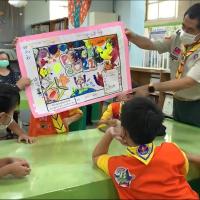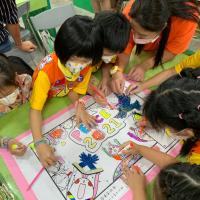 That is challenge for the scout children to painting together with quite and peace. Most of children has their own idea and hope other team member follow their idea to paint the picture. We need explain more and more about "peace to painting" and help children to respect others idea.