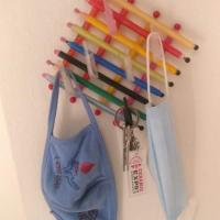 ২. চাবি রাখার স্ট্যান্ড (উপকরণ: পুরাতন প্লাস্টিকের কলম, পুঁতি, গ্লো, একটা ৩ইঞ্চির সুতা )