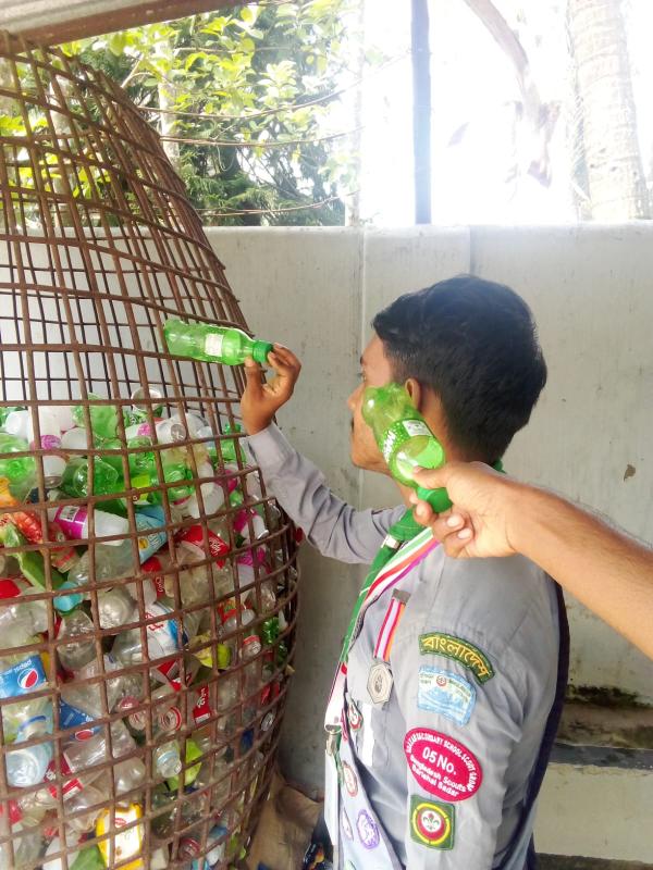 প্লাস্টিকের পরিবেশ এর দূষন ঘটায়, তারজন্য আমরা স্কাউট সদস্যরা অব্যাবহৃত বোতল গাছ লাগিয়েছি। ১ম এ বোতল সংগ্রহ করেছি আমাদের স্কুল এর প্লাস্টিকের সংগ্রহ এর জায়গা থেকে, তারপর বোতল গুলো কেটে তার ভিতর মাটি দিয়ে গাছ রোপন করি। তারপর গাছে পানি দেই।