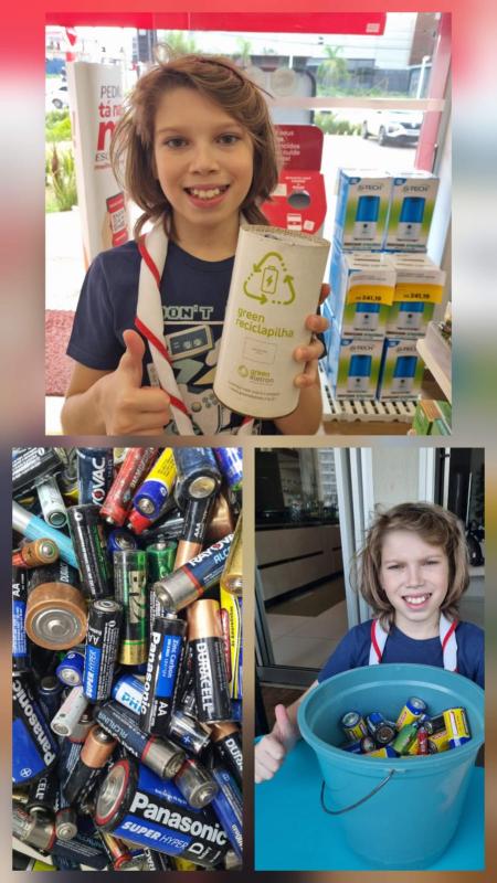 Durante a campanha, foram coletadas 355 pilhas. Aprendi que o descarte inadequado de pilhas é perigoso, pois elas contêm substâncias tóxicas (mercúrio, chumbo, cádmio), que contaminam o solo, a fauna e a flora, trazem problemas à saúde e poluem a água. No Distrito federal, podemos consultar os pontos de coleta no site da Secretaria de Estado do Meio Ambiente – https://www.sema.df.gov.br/pontos-de-coleta .