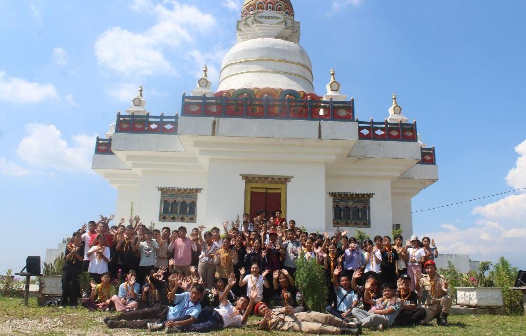 The groups were organized into patrols and began the peaceful hike towards the chorten. The scouts took part in a cleaning campaign, where they helped to clean the area surrounding the Chorten. After the cleaning activity, participants gathered together to share lunch in a spirit of camaraderie and teamwork, reflecting the values of peace and collaboration that the event aimed to promote..