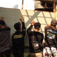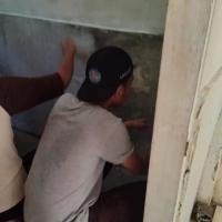 Saya disana membantu tukang dalam Mengayak Pasir, Memasang Kalsibot, dan Mengecat Dinding
