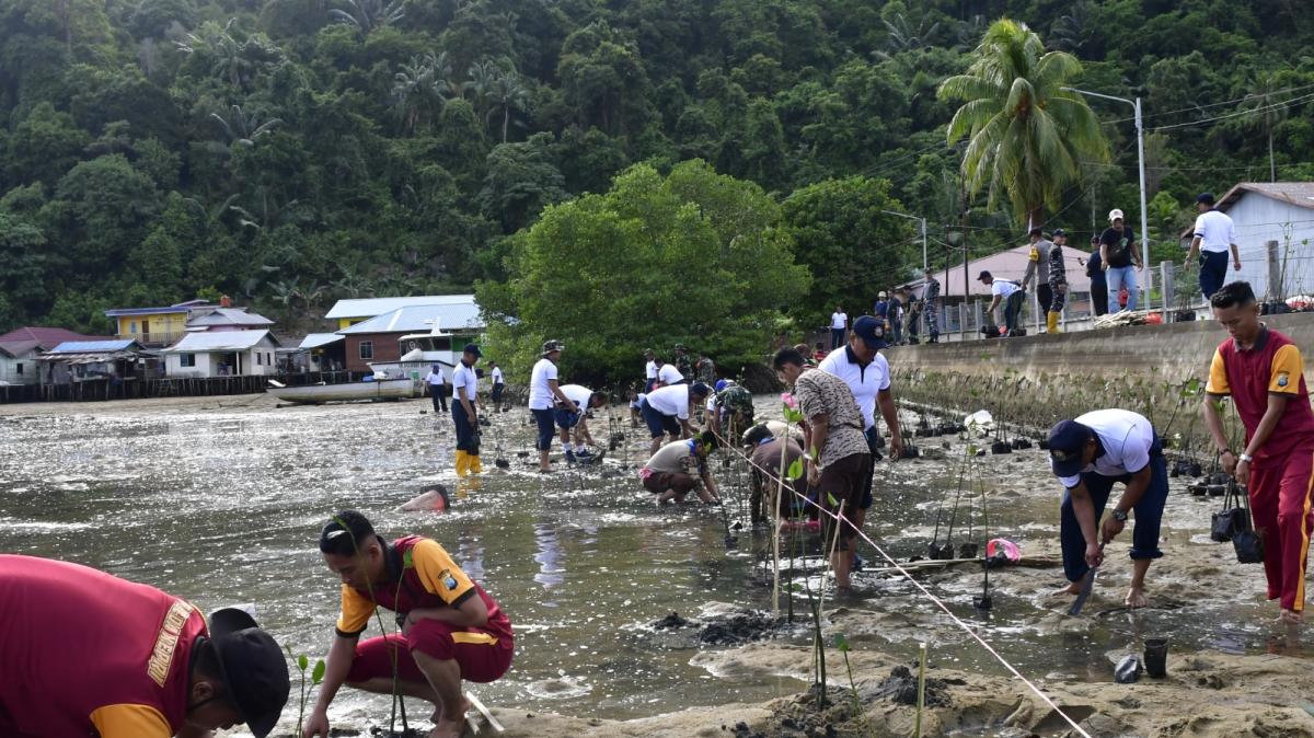 Penanaman pohon mangrove untuk mencegah abrasi
