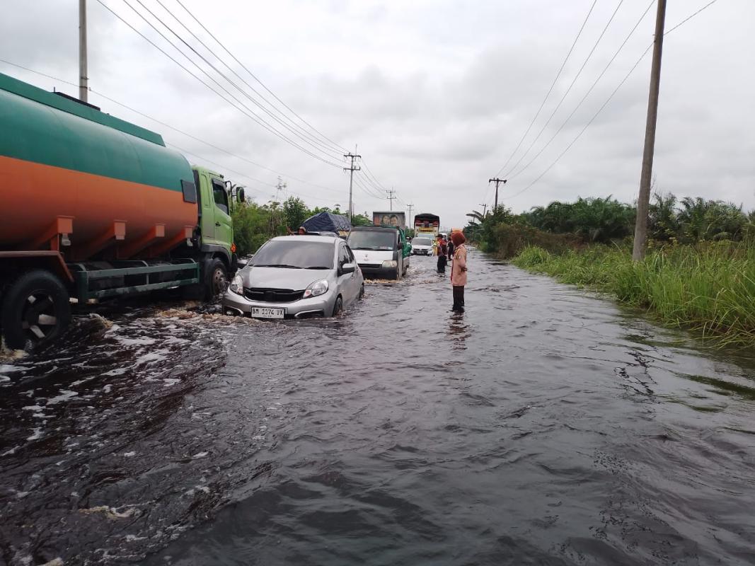 Kami Pramuka Peduli Kwarcab Pelalawan Bersama Kepolisian, BPBD, Dan Dishub Kab. Pelalawan Membantu Masyarakat Yang Ingin Melewati Jalan Yang Tergenang Banjir
