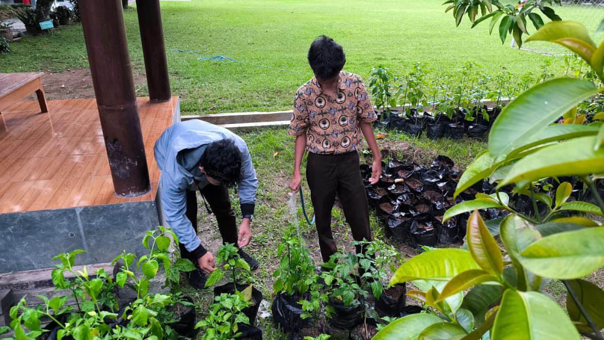 pertama saya memanfaatkan kan lahan kosong mulai mengolah tanah dengan mencampur pupuk lalu memasukan ke polybag. setelah itu saya membeli bibit tanaman cabai dan juga saya membeli jahe, kunyit, lengkuas. selain itu saya juga melakukan sistem tanam hidroponik dengan tanaman selada dan sawi.