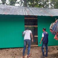 আমরা উপহার সামগ্রী নিয়ে এসে, সার্ভে করার পরে তাঁর বাড়িটি দেখে পুনর্নির্মাণের উদ্যোগ নিয়েছি। বাজার থেকে ঘরের মাপ অনুযায়ী সকল জিনিস ক্রয় করে , ঘর করার মিস্ত্রি দিয়ে আমরা এই কাজ সম্পূর্ণ করি । সেই সাথে বন্যায় ক্ষতিগ্রস্ত ল্যাট্রিনটিও ঠিক করা হবে। ঘরটির কাঠামো দাঁড় করানো হয়েছে এবং টিন লাগানোর কাজ শেষ পর্যায়ে ঘর করার মিস্ত্রীর মাধ্যমে ৷