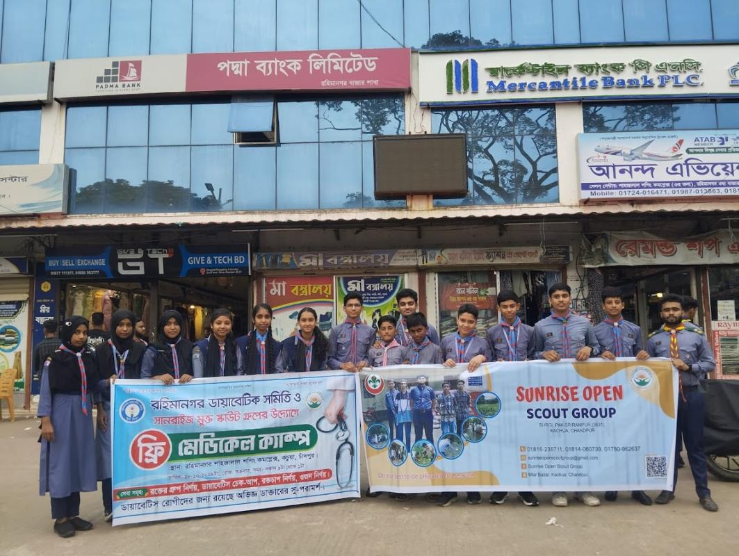 রহিমানগর ডায়াবেটিক সমিতির এর অর্থায়নে চাঁদপুর জেলাধীন কচুয়া উপজেলায় এই স্বাস্থ্যসচেতনতা ও ফ্রী মেডিকেল ক্যাম্প কার্যক্রম বাস্তবায়ন করা হয়। এসময় প্রায় ৬০০ মানুষের ডায়াবেটিস,রক্তচাপ ও রক্তের গ্রুপ নির্ণয় করা হয় এবং তাদেরকে নিজেদের স্বাস্থ্য সম্পর্কে সচেতন করা হয়। স্কাউট এবং গার্ল ইন স্কাউটরা সারাদিনব্যপী পথচারীদের সেবা দিয়ে যায়।
