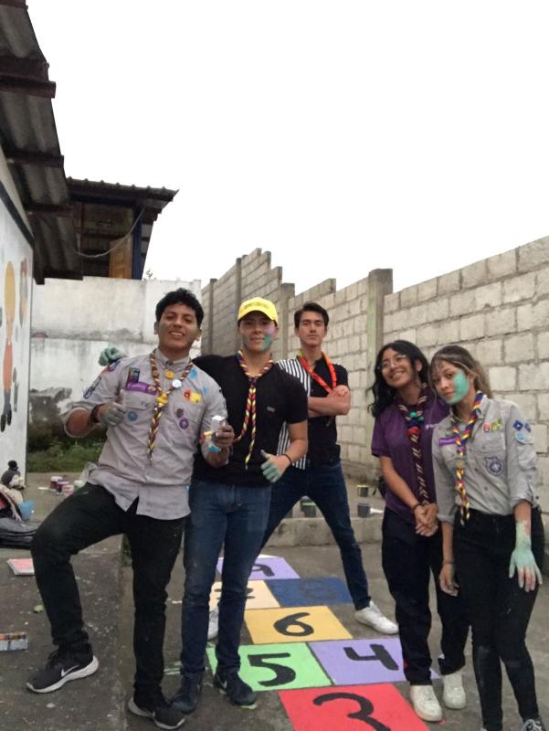 Decidimos visitar tres escuelas de escasos recursos: la Escuela Diocesiana de Unamuncho, la Unidad Educativa Toacazo y la Unidad Educativa José Joaquín de Olmedo (Ambatillo). Planificamos un cronograma y un plan de autogestión para cada una. Con los fondos necesarios para pinturas, brochas y transporte, visitamos cada escuela. Durante las visitas, creamos rayuelas y murales para mejorar el aprendizaje lúdico de los estudiantes, adaptando las actividades a las necesidades de cada plantel.