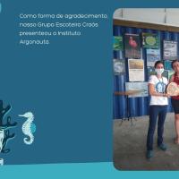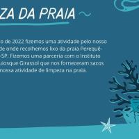 Nós fomos até o litoral realizar um acampamento e limpamos a praia, vimos uma palestra no Instituto Argonauta e fizemos uma roda de conversa na pousada que estávamos acampando.