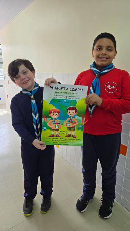 Os lobinhos, João e Heitor, apresentaram o Projeto Planeta Limpo: juntos pela natureza na escola, foram em todas as salas de aula da instituição explicando o objetivo e como poderiam ajudar com o projeto: coletas das latinhas para reciclagem. Deixaram cestos para arrecadação na escola durante 1 mês. Ao final da arrecadação, ambos higienizaram todas as latinhas (cerca de 800) e levaram para a sede do escoteiro para que a Kotick levasse até a instituição que recebe e realiza a reciclagem.