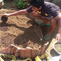 iii) How to make a compost bin using dry leaves, dry roots & plant wastes.