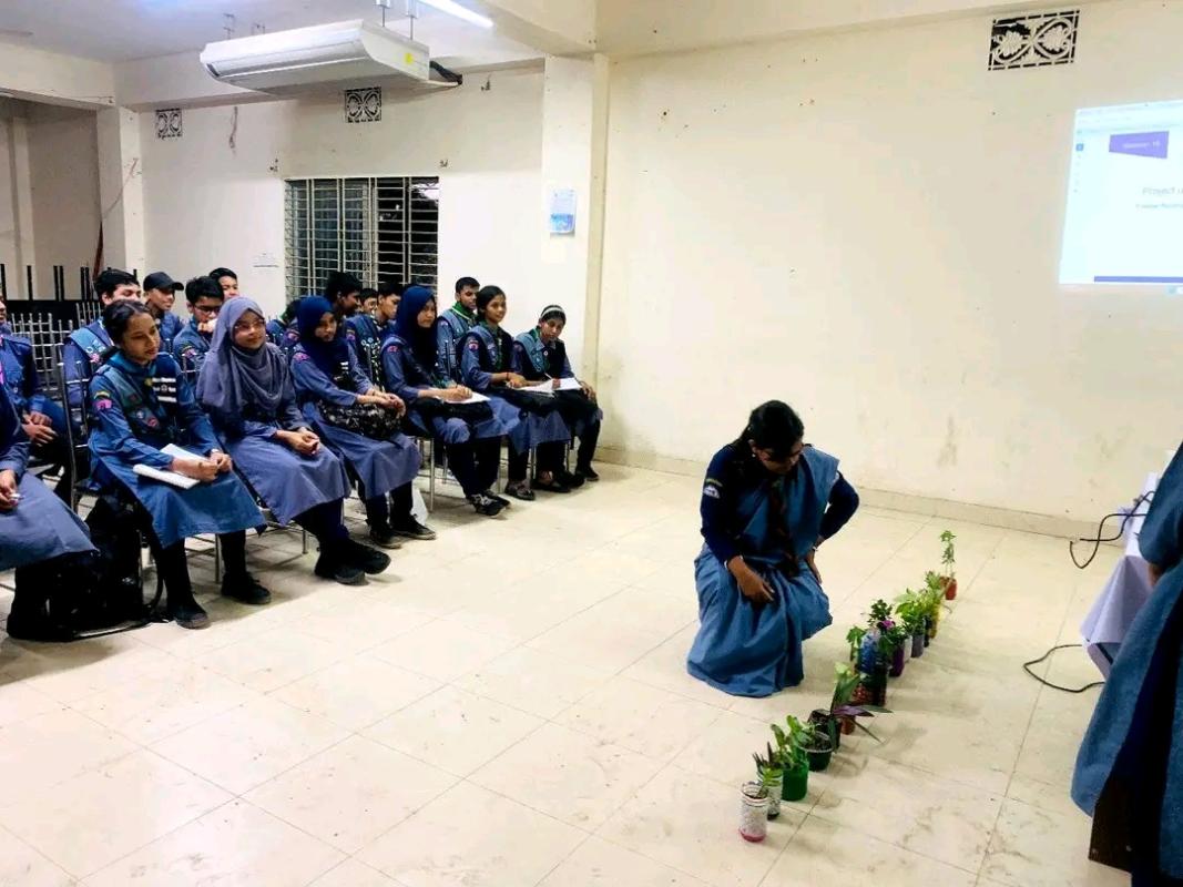 আমরা চাঁদপুর জেলার ৩০ জন স্কাউট এবং ৫ জন ইউনিট লিডার চাঁদপুর জেলার স্কাউট ভবনে প্লাস্টিকের পুনঃব্যবহার নিয়ে একটি মূলক কর্মসূচি আয়োজন করি। যেখানে আমরা প্লাস্টিকের ব্যবহার সম্পর্কে সচেতনতা বৃদ্ধি এবং কিভাবে প্লাস্টিকের পুনঃব্যবহার করা যায় তা সম্পর্কে ধারণা পাই। এবং নিজেদের মধ্যে এ নিয়ে নানান ধরেন প্রস্তাতাবনা দেই। পরবর্তীতে দুইজন করে স্কাউটের একটি দল বিভক্ত হয়ে প্লাস্টিকের মাধ্যমে আমরা ফুলের টব তৈরি করি এবং তার মধ্যে চারা রোপন করি। এবং আমাদের জেলা স্কাউট ভবনে একটি ছাদবাগান তৈরি করি।