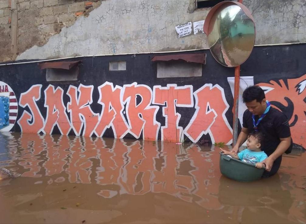Pramuka bantu warga saat banjir di Jakarta