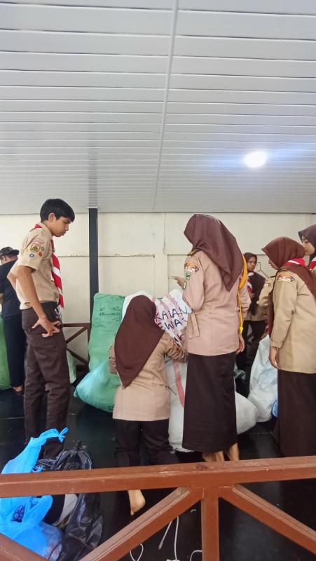 Pramuka MAN 2 Banda Aceh dan Pramuka Peduli Kwarda Aceh menyalurkan pakaian layak pakai dan bahan makanan ke wilayah terdampak banjir dan tanah longsor menggunakan kapal kargo KN Antares.