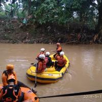 Pramuka Peduli Kota Bekasi bersama BPBD Kota Bekasi melakukan pencarian dan pertolongan korban tenggelam di sekitar kali cikeas