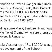 Providing some mask , sanitizer , hand wash , phenyle , toilet cleaner which are prepared by our Rovers & Rangers .