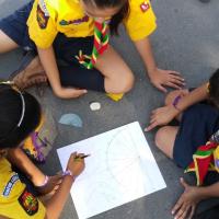 Se llegó el 14 de Abril y se procedió a formar en círculo la manada y se les comentó sobre si se acordaban de la forma de dibujar y construir su reloj solar de la semana pasada. Se les hicieron algunas preguntas sobre el reloj y se les entregó el reloj realizado a cada seisena.