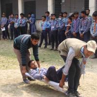 রোভারদের রোগী বহন পদ্ধতি শেখানো হয়।