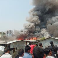রূপনগর বস্তিতে আগুন নেভাতে রোভার স্কাউটরা
